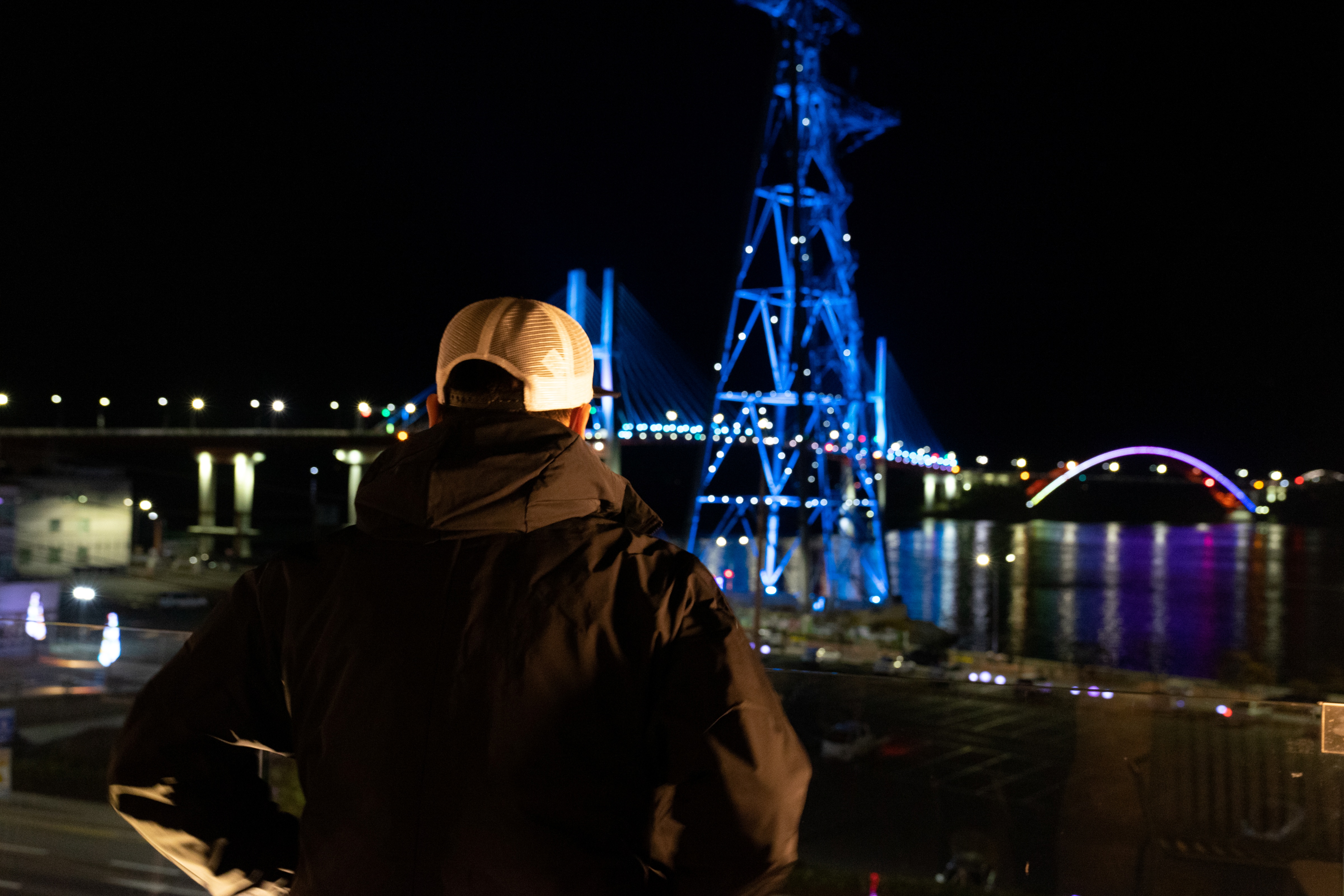 뒤에 케이블카 철구조물에 조명이 켜져 있을 때 찍는걸 추천