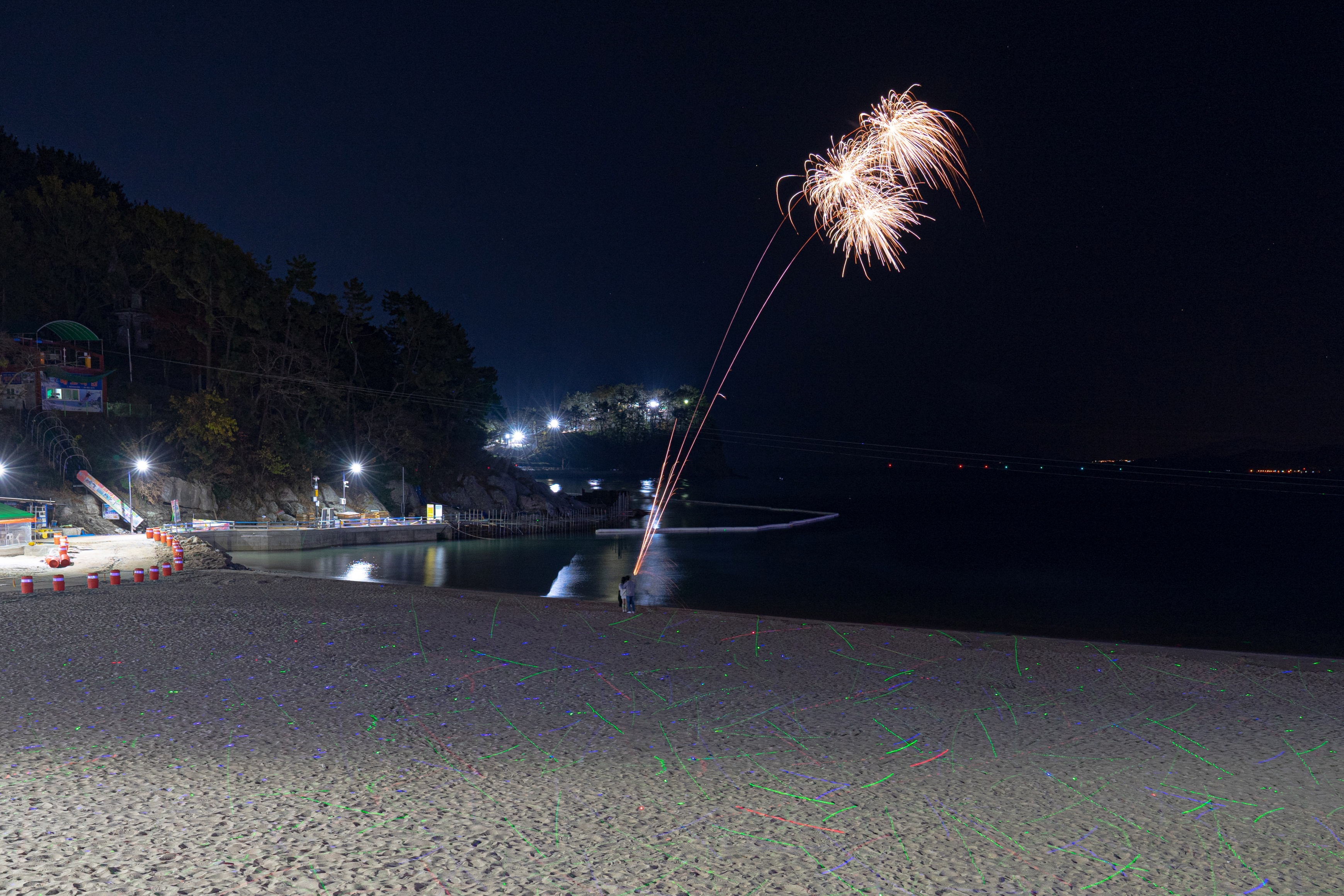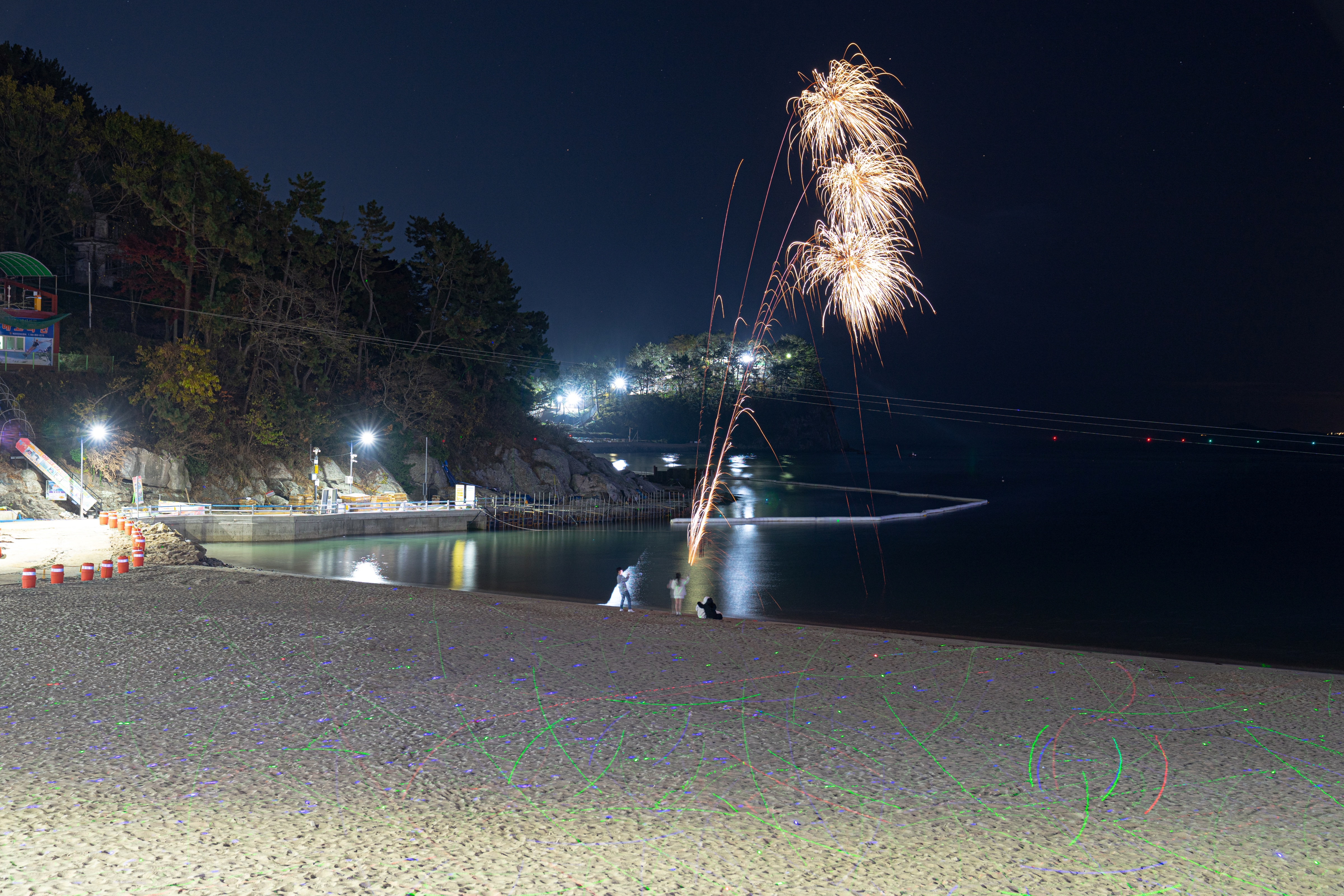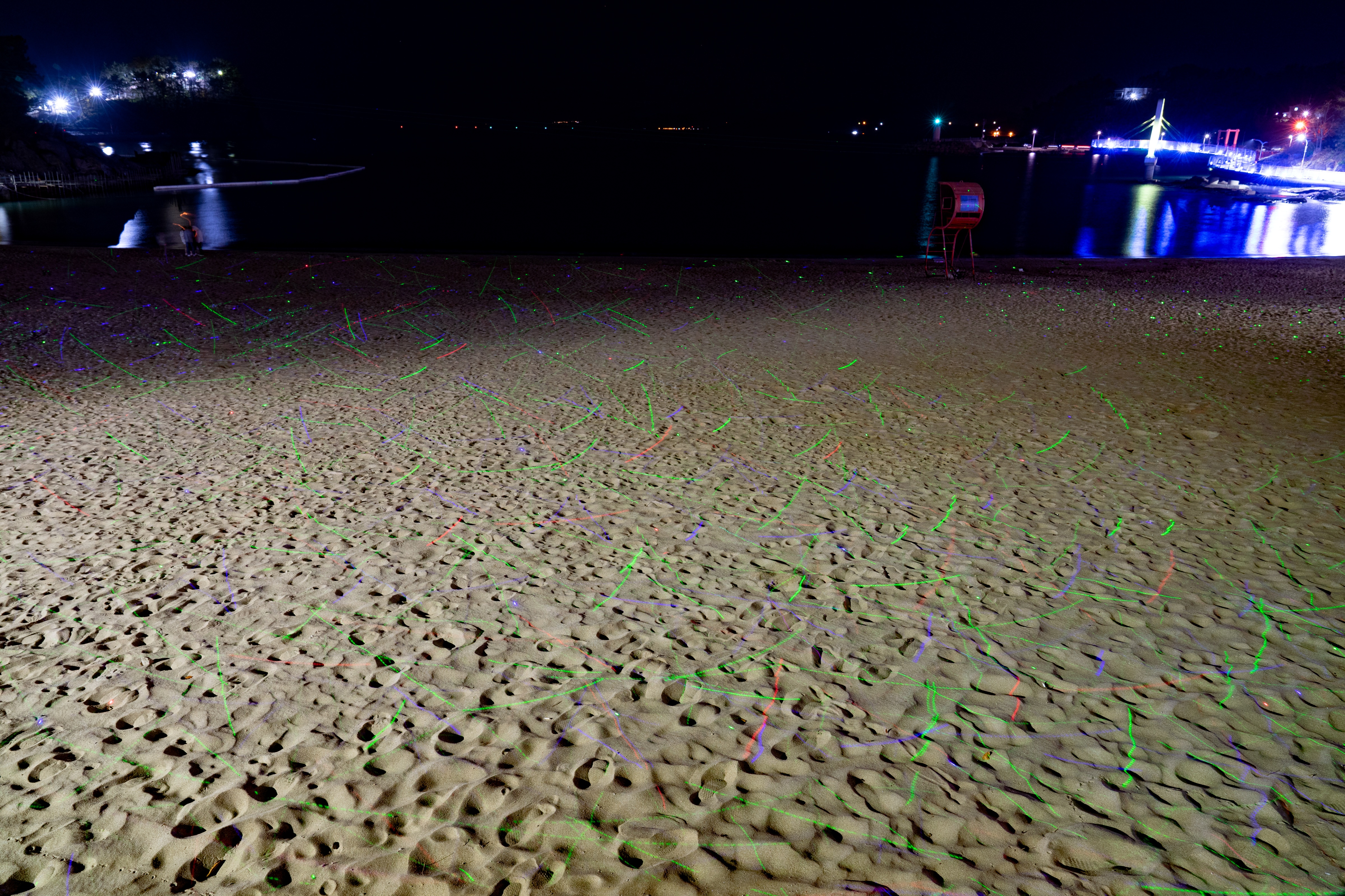 남일대 해수욕장에는 레이저를 모랫바닥에 비추어 반짝반짝거리게 해서 이쁩니다.