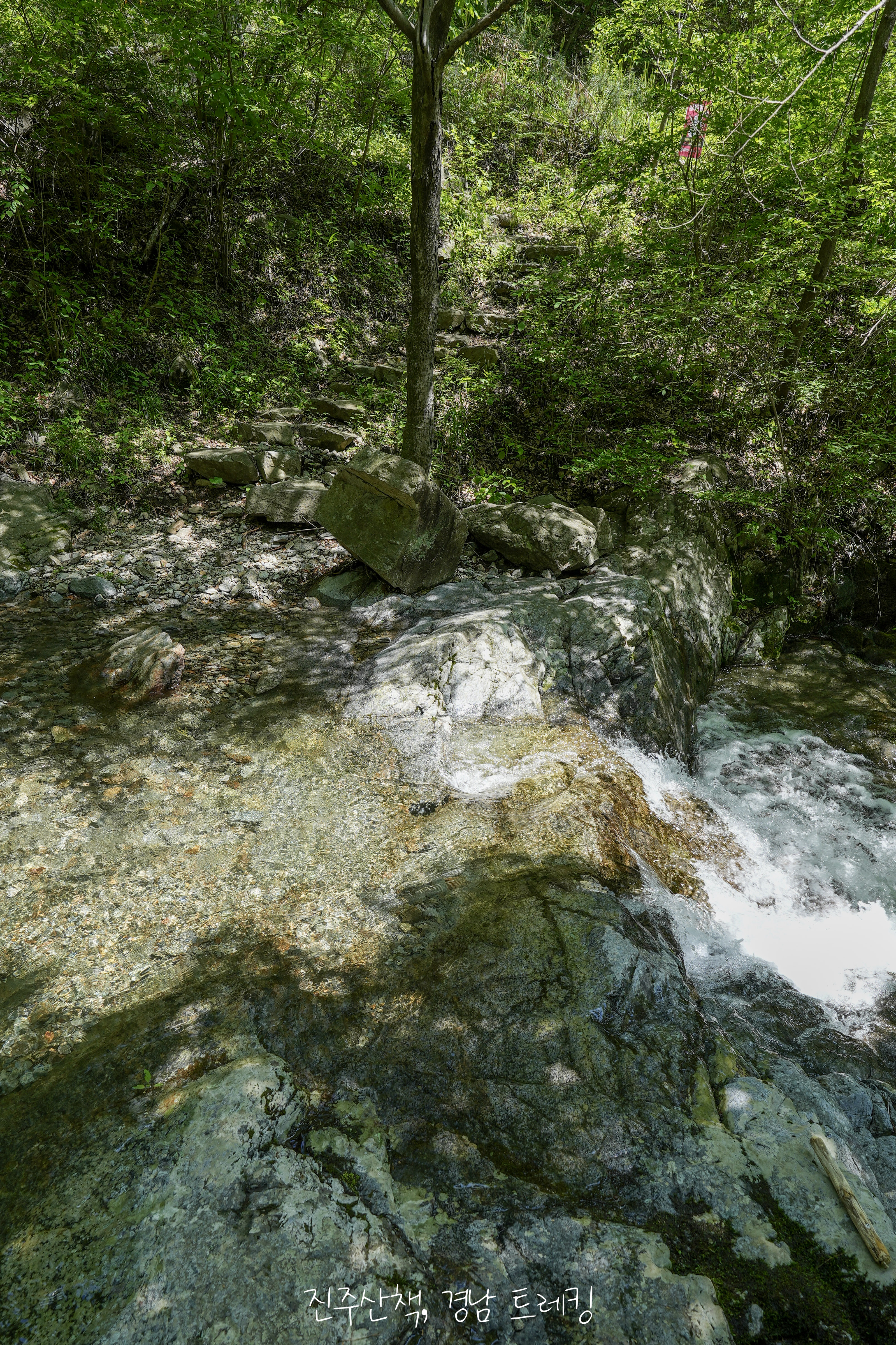 사진 상 왼쪽 얕은곳으로 조심히 건너왔습니다