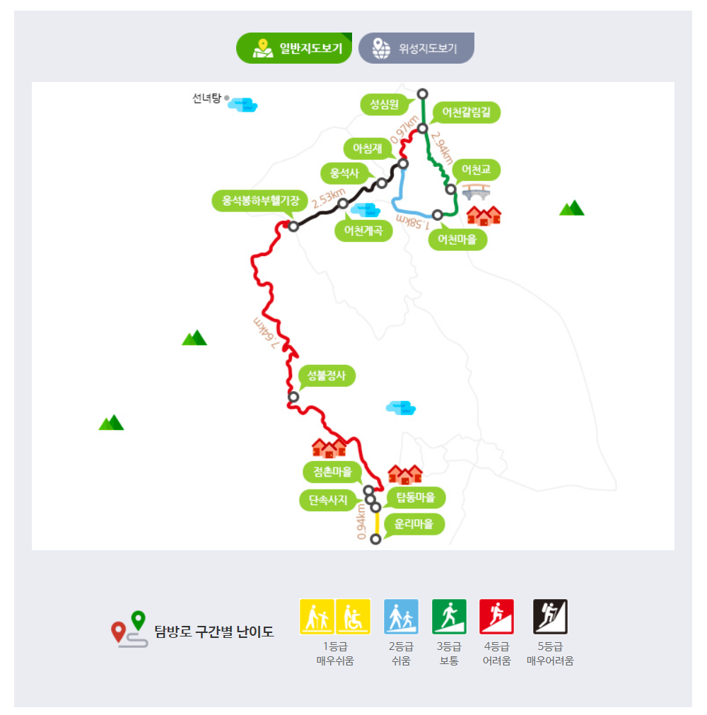 총 난이도는 중간정도이며 하산길에는 날벌레보다 거미줄이 많아서 힘들었습니다