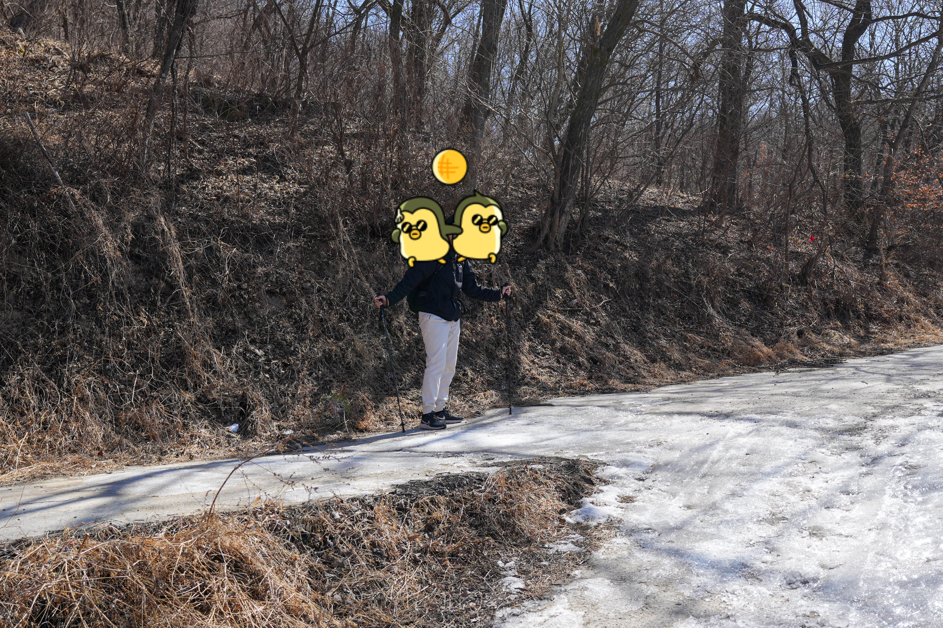 하산하는 길은 임도라서 편하긴?했는데 바닥이 얼어있어서 엄청 미끄러우니 잔걸음으로 지나가셔야 합니다
